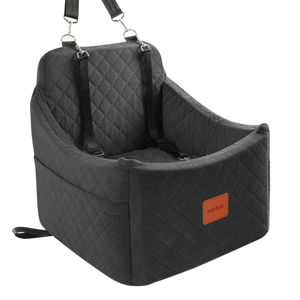 INDYBUD Small Dog Car Seat, Memory Foam Dog Booster Car Seats with Thick Cushion for Medium Dogs Under 35lbs, Detachable Washable Pet Seat with Storage Pockets,2 Safety Belts(Black, Medium)