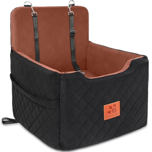 GL GLENSLAVE Dog Car Seat for Small/Medium Dogs Under 35lbs, Memory Foam Dog Booster Seats,Detachable and Washable Traval Pet Car Seat, Dogs Bed with 2 Safety Belts (Balck/Brown)