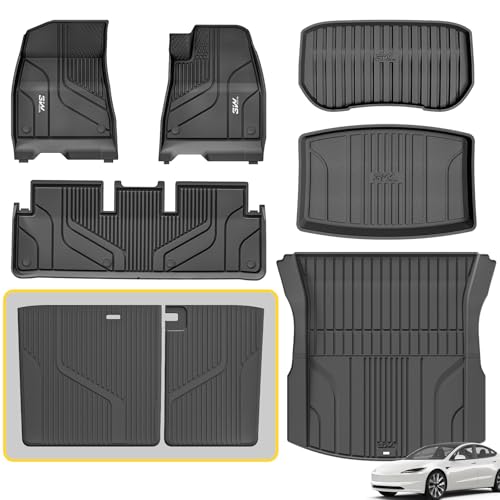 3W Floor Mats & Carpets & Boot Liners & Seats Back Cover Fit for Tesla Model 3 2024 2025 2026 Highland, TPE All Weather Full Set Car liners and Cargo Mats, Dog Friendly Tesla Model 3 Accessories