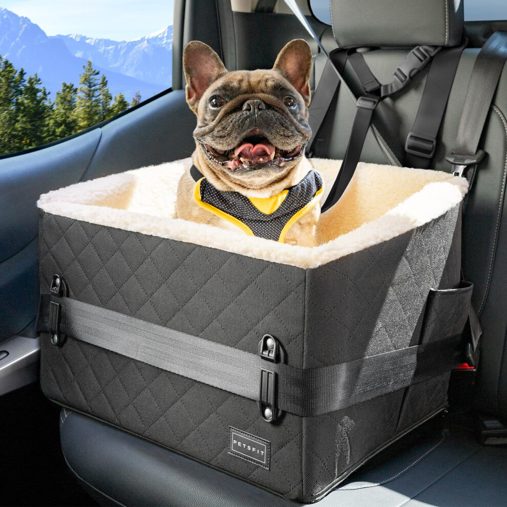 PETSFIT Dog Car Seats for Small Dogs, Soft Foam Dog Booster Seat with Patented Safety Buckles, Storage Pockets and Detachable Clip-On Safety Leash for