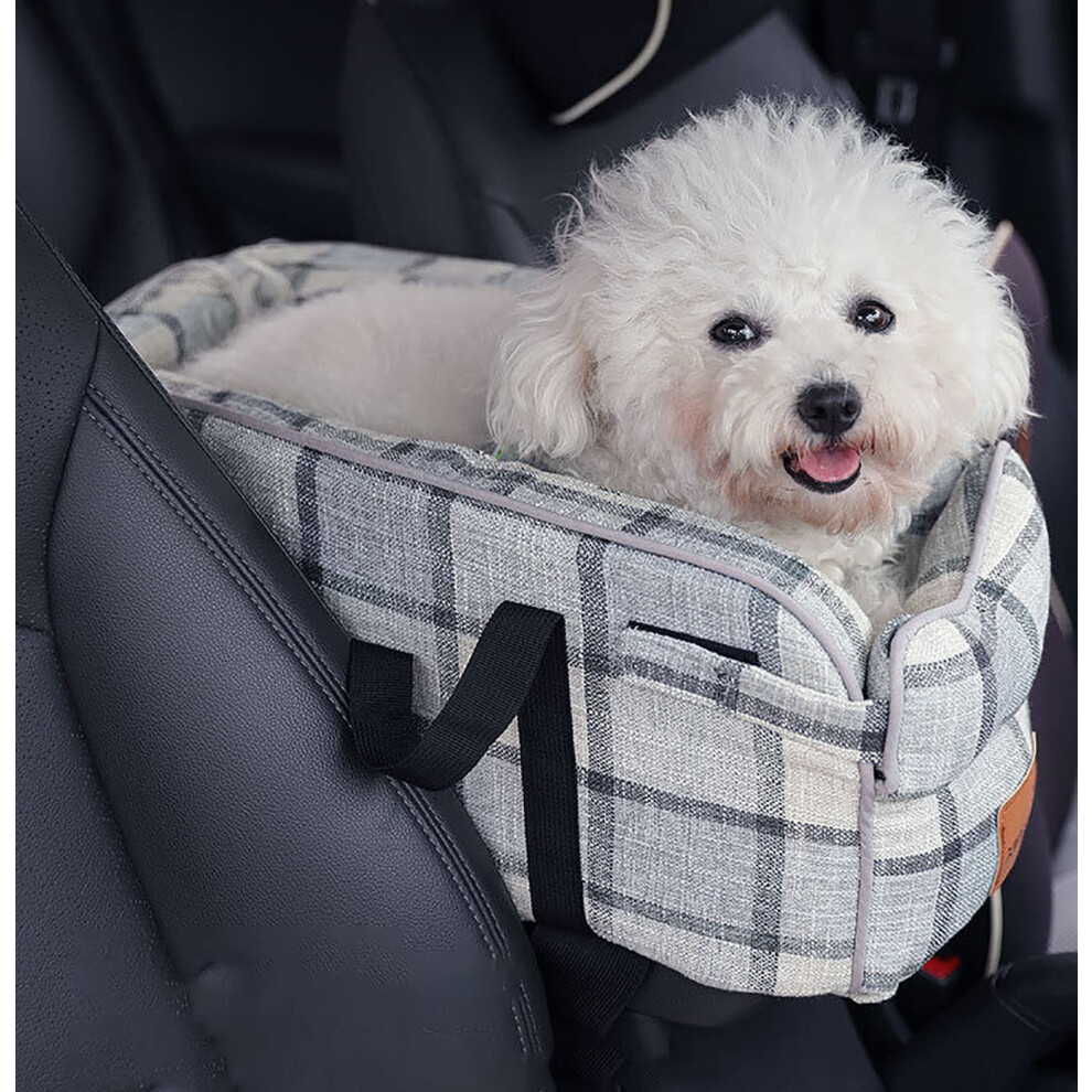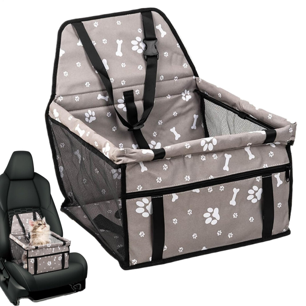 GoBuyer Waterproof Pet Dog Car Seat Booster Carrier Box and Basket with Seat Belt Harness Restraint for Puppy Cat Travel (Grey, Standard 40x40cm)