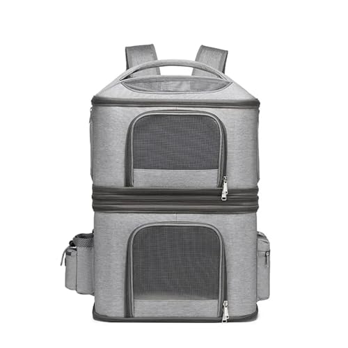 XZJPMT Double Layer Pet Backpack Detachable Portable Outdoor Dog Carrier Foldable Aviation Box for Cats and Dogs(Gray)