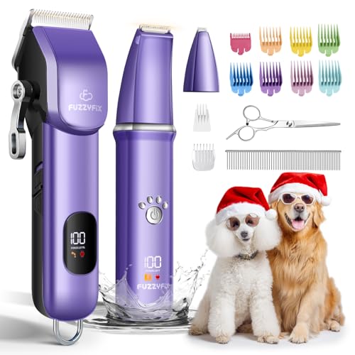 FuzzyFix Dog Grooming Kit 3 in 1,Dog Clippers Professional for Thick Hair with Cordless,Pet Grooming Kit with Waterproof Paw Trimmer,for Full-Body,Purple