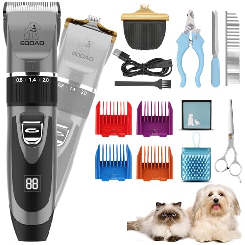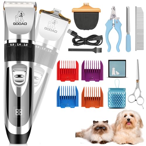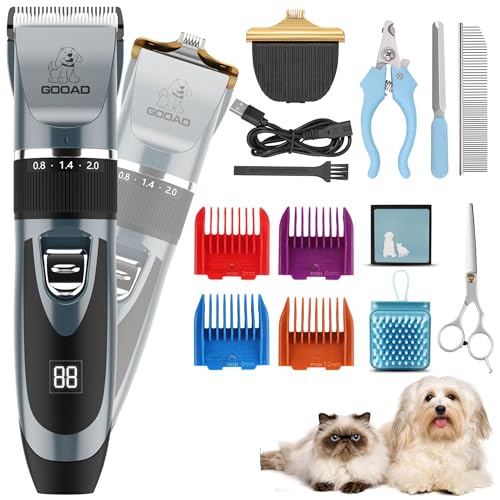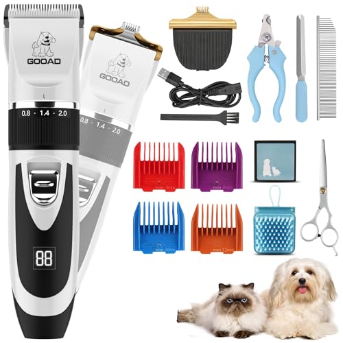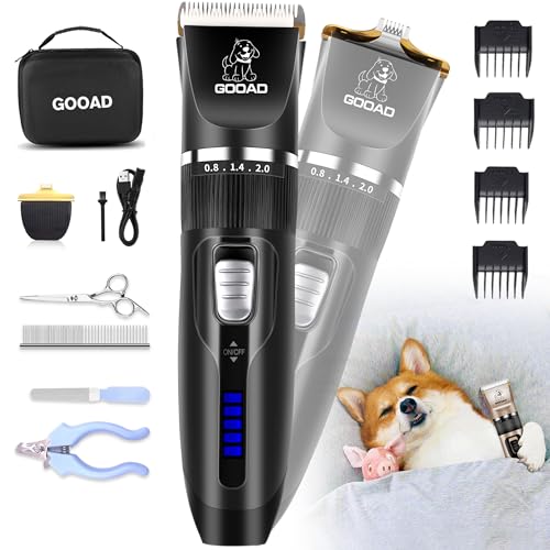Gooad Dog Clippers Grooming Kit and Paw Trimmer,Cordless,Low Noise, Electric Quiet,Rechargeable, Dog Trimmer Grooming Tool, Pet Hair Clippers for Thick Coats,Shaver for Small and Large Dogs&Cats