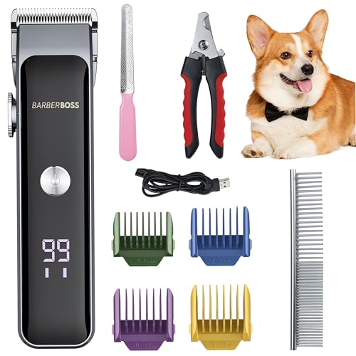 BarberBoss All-in-One Dog Grooming Kit, Cordless Clippers for Thick Hair, Complete Trimming Set for Dogs & Cats, Clippers for Matted Fur, All-in-one Pet Trimmer Set