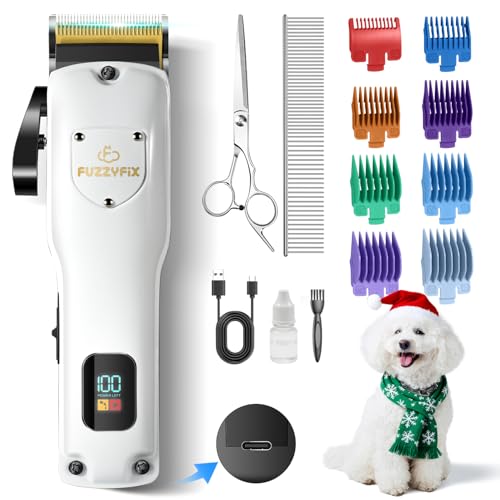 FuzzyFix Dog Clippers for Grooming for Thick Heavy Coats, Professional Pet Grooming Clippers Supplies Kit Low Noise Rechargeable Stainless Steel Hair Trimmer with Ceramic Blade for Dogs Cats Animals