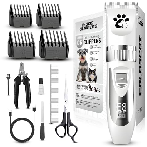 Dog Clippers Cordless, Dog Grooming Kit, Low Noise Rechargeable LED Display Pet Trimmer (White)