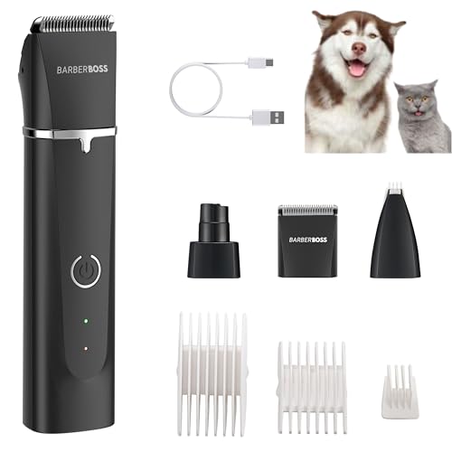 BarberBoss Pet Grooming Kit, Cordless Low-Noise Trimmer for Thick Coats, Matted Fur, Rechargeable Dog Grooming Clippers, Dog Paw Trimmer, Pet Grooming Set