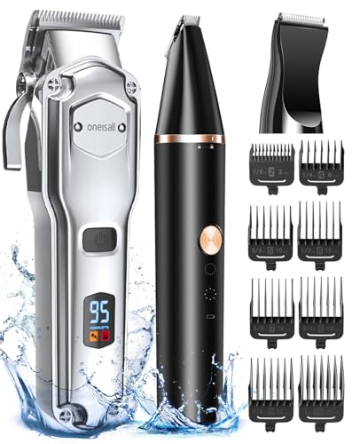 oneisall Dog Clippers & Paw Trimmer 3 in 1 Grooming Kit, Dog Clippers Professional for Thick Hair with Stainless Steel Blade, IPX7 Waterproof,Low Noise, Cordless Pet Shaver