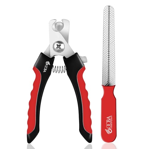 OCBA Dog Nails Clippers with Safety lock & Nail File Professional Dog clippers suitable for all sized Breeds Protection Guard to Prevent Over Cutting suitable for Cats Rabbits (Red Black, Large)