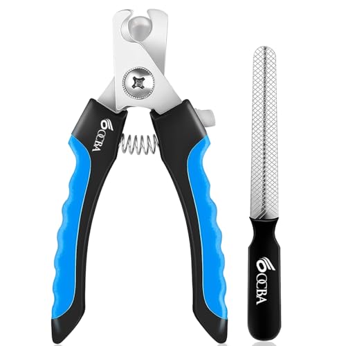 OCBA Dog Nails Clippers with Safety Lock & Nail File Professional Dog Clippers Suitable for All Sized Breeds Protection Guard to Prevent Over Cutting Suitable for Cats Rabbits (Blue Black, Large)