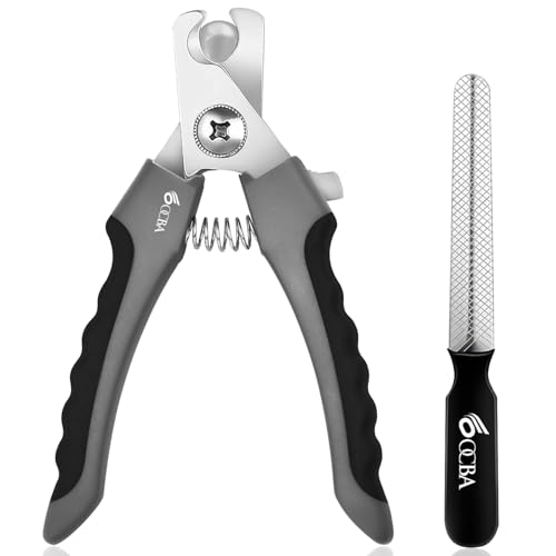 OCBA Dog Nails Clippers with Safety Lock & Nail File Professional Dog Clippers Suitable for All Sized Breeds Protection Guard to Prevent Over Cutting Suitable for Cats Rabbits (Gray Black, Large)