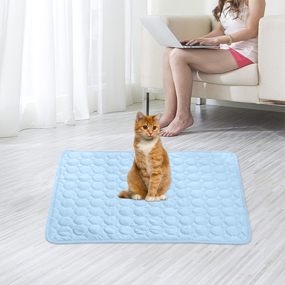 (Light Cyan, L) Dog Cooling Mat, No Need to Freeze Or Refrigerate This Cool Pet Pad Cat Mats- Keep Your Pet Cool, Machine Washable