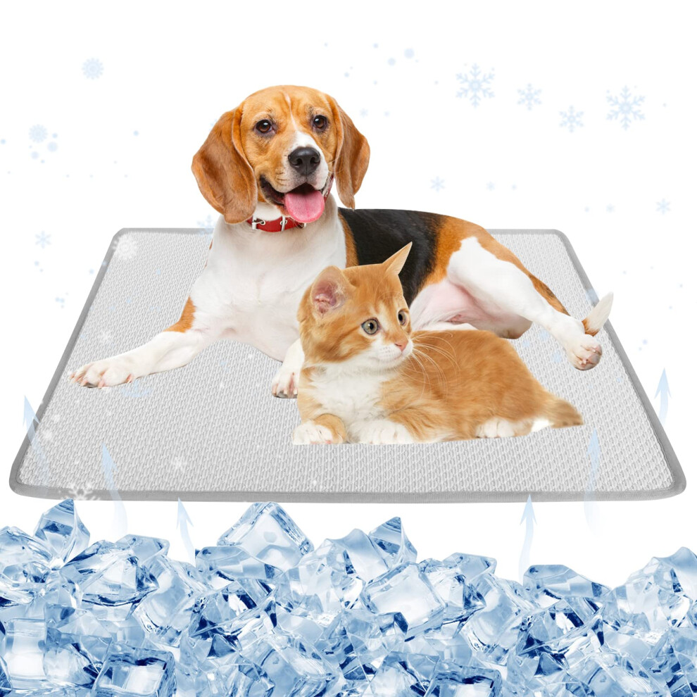 (GRAY, L) Dog Cooling Mat, No Need to Freeze Or Refrigerate This Cool Pet Pad Cat Mats- Keep Your Pet Cool, Machine Washable