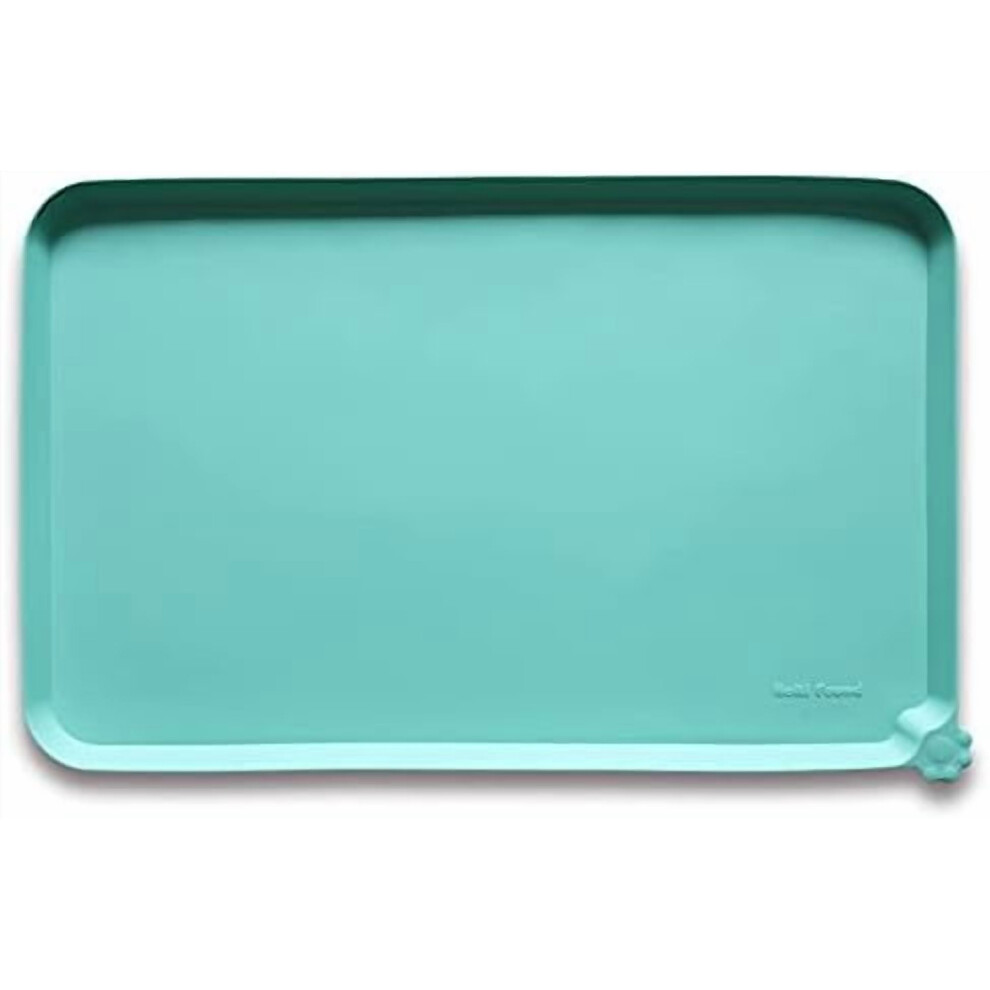 L Silicone Non Slip Pet Food Mats - Cat & Dog Bowl Placemats - Waterproof Feeding Mats for Carpet - Cool Mint