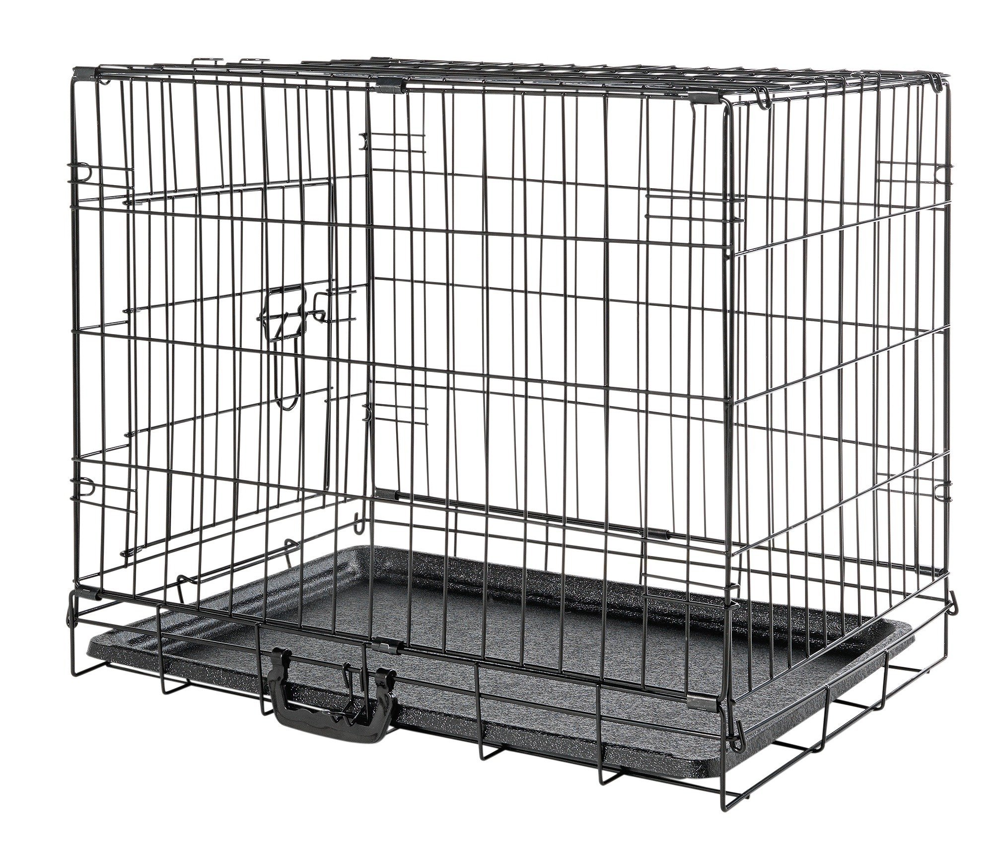DogCrates+ Medium Foldable Dog Crate with 2 Doors, Non-Chew Plastic Removable Tray, 30-Inch Black