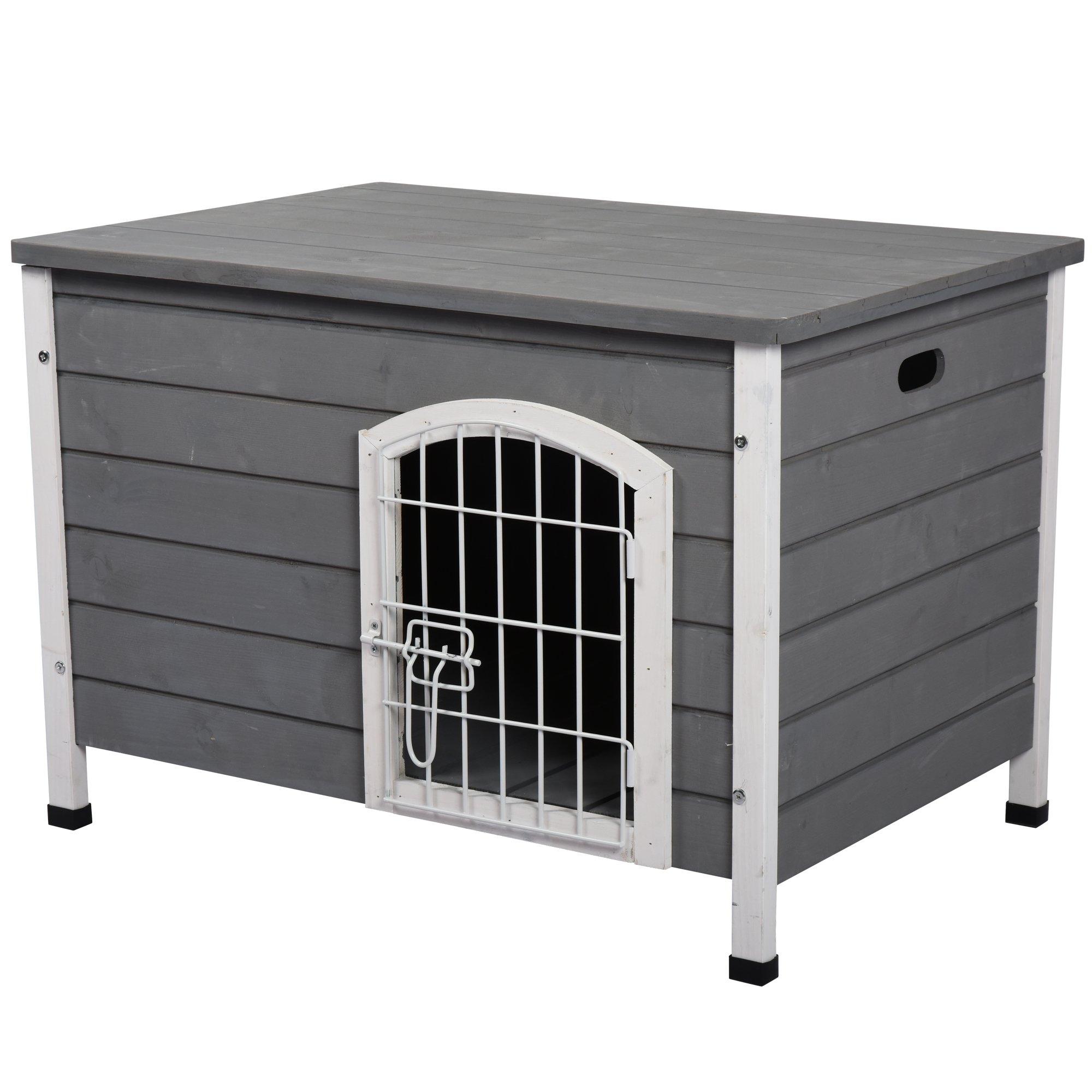 Wooden Dog Crate Lockable Door Small Animal House with Openable Top Gray