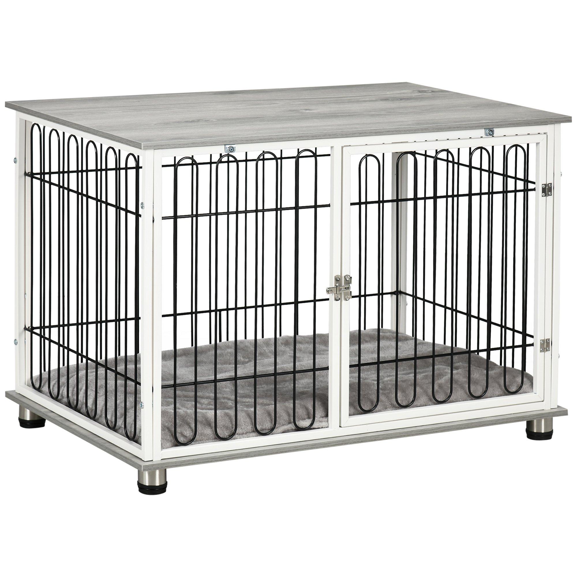 Dog Crate Furniture End Table, Dog Cage with Cushion - Grey