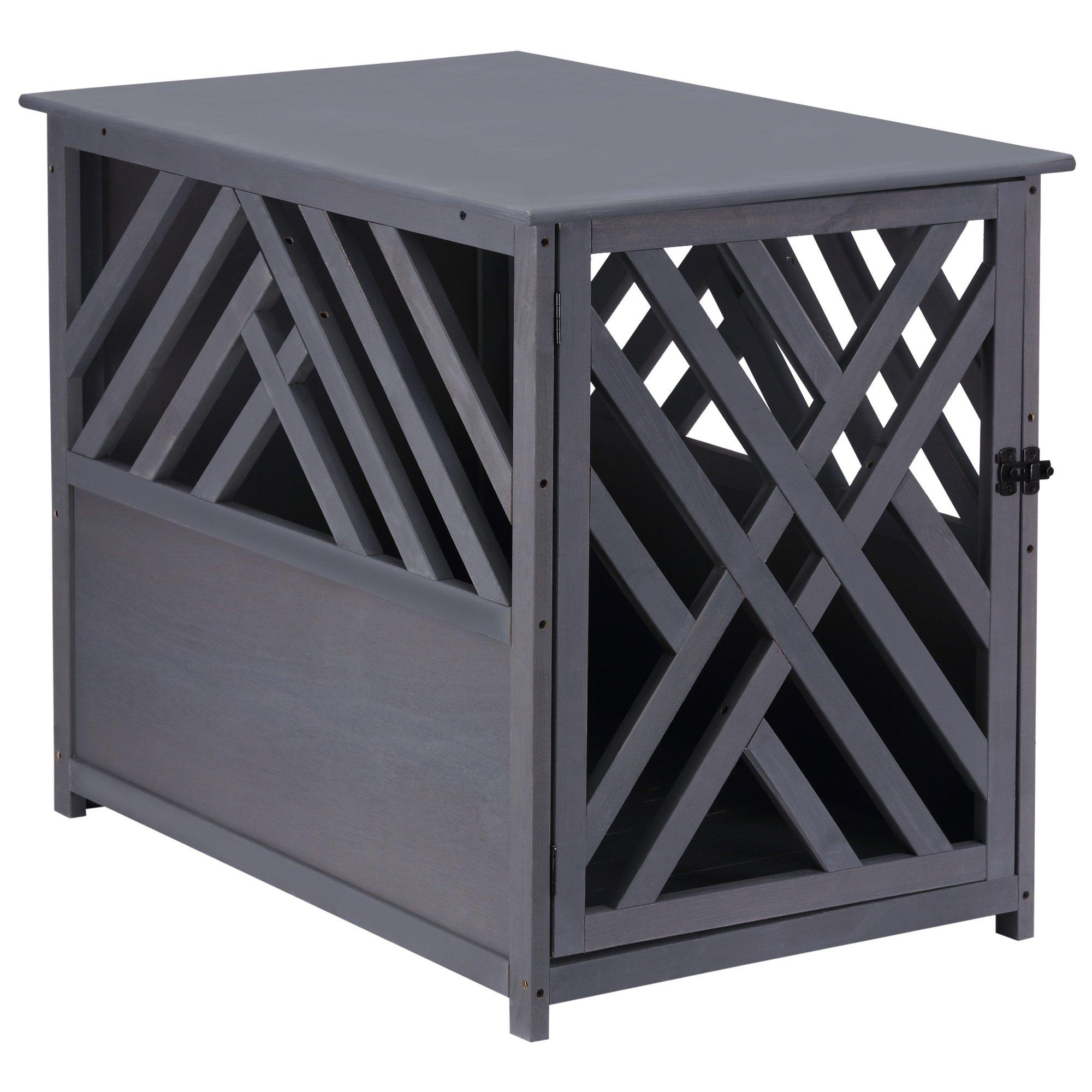 Wooden Dog Crate, Side Table Lockable Door for Medium Dog- Grey