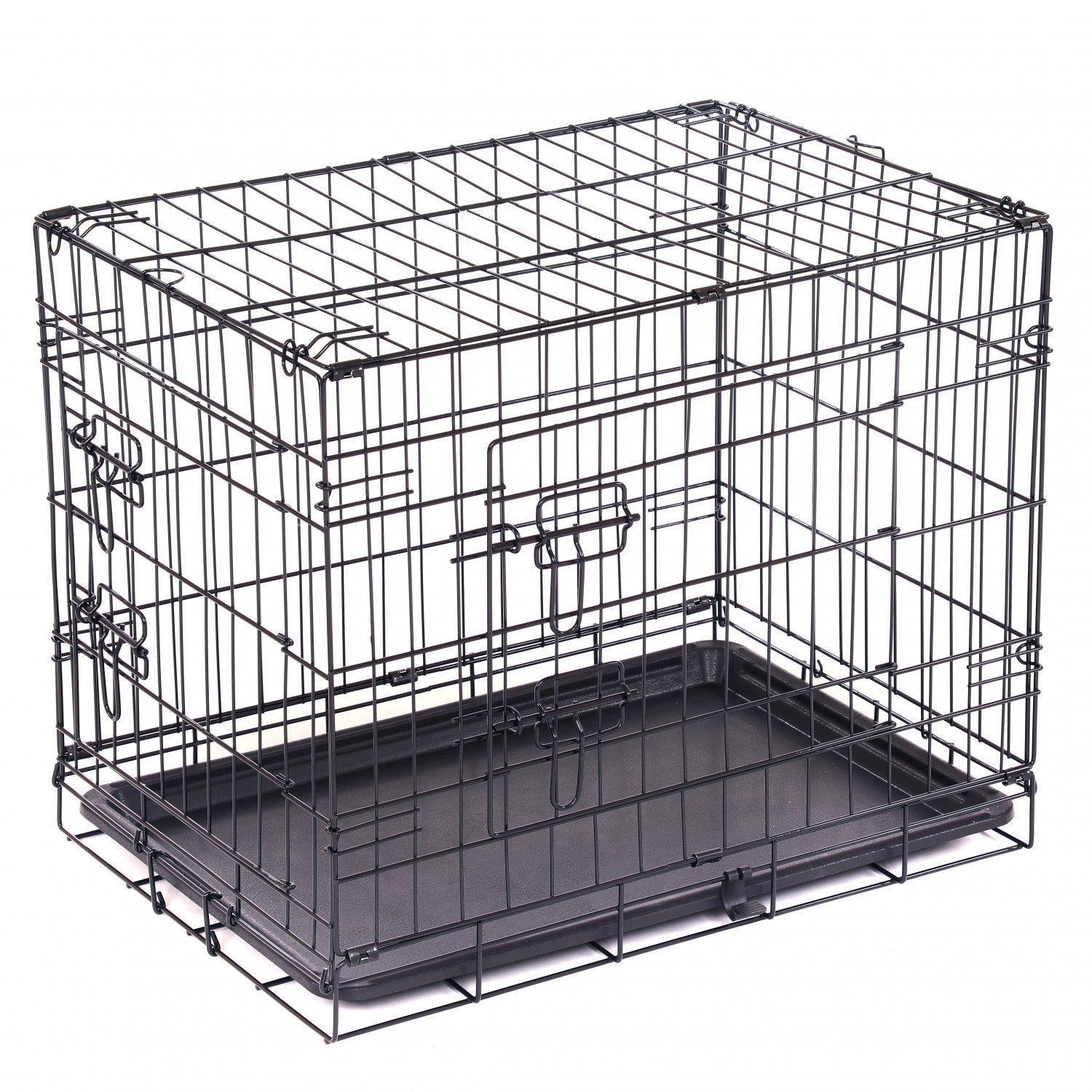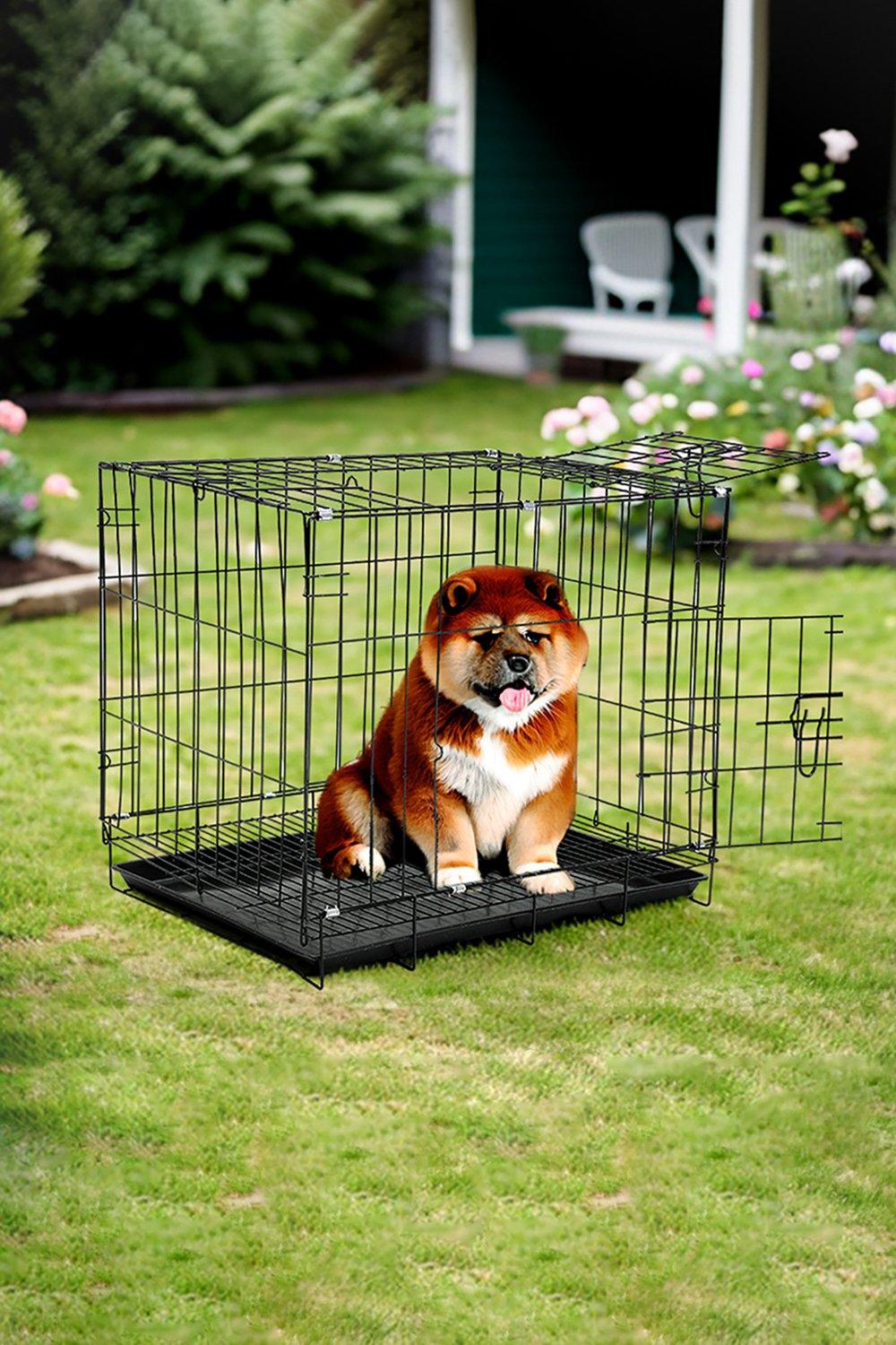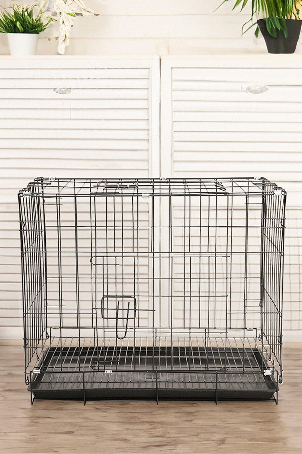 60cm W x 42cm D x 50cm H Wire Dog Crate with 2 Doors and Tray