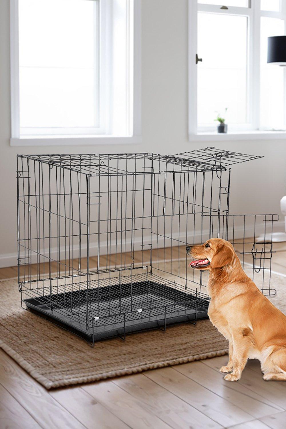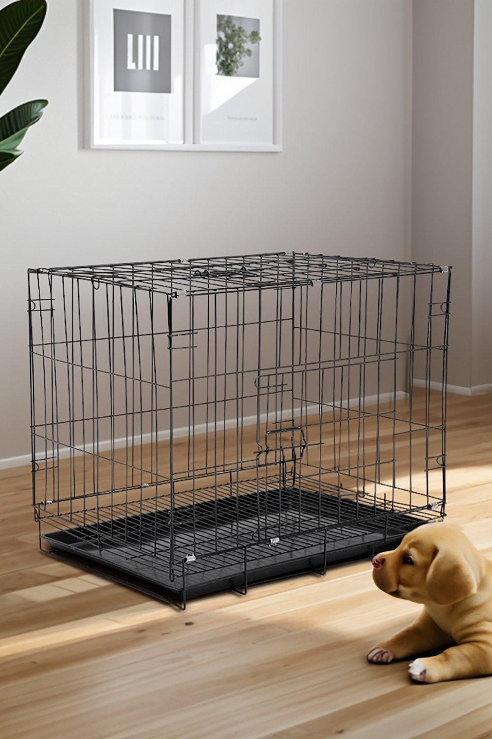 85cm W x 60cm D x 70cm H Wire Dog Crate with 2 Doors and Tray