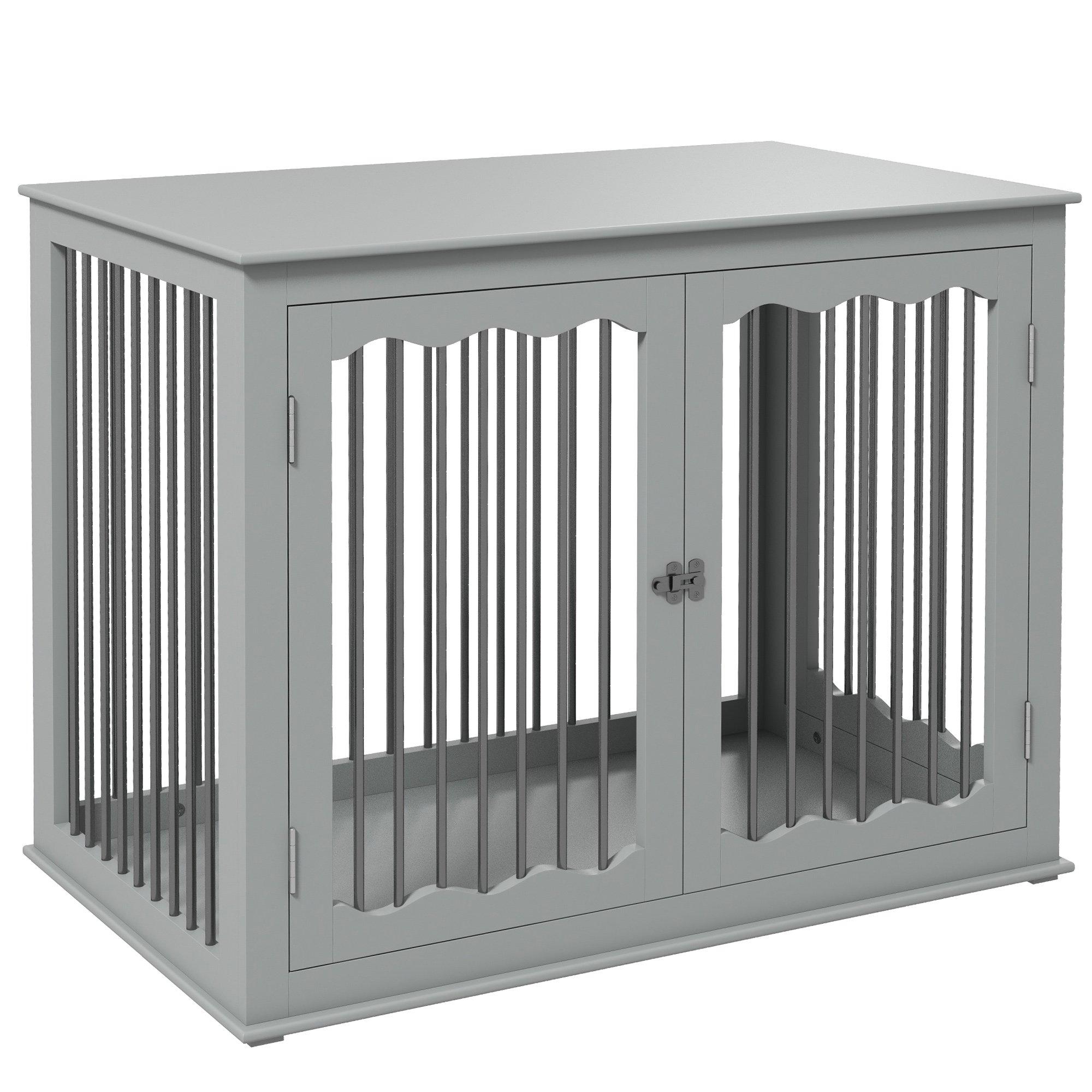 Double-Door Dog Furniture Crate, for Medium Dogs, Indoor Use - Grey