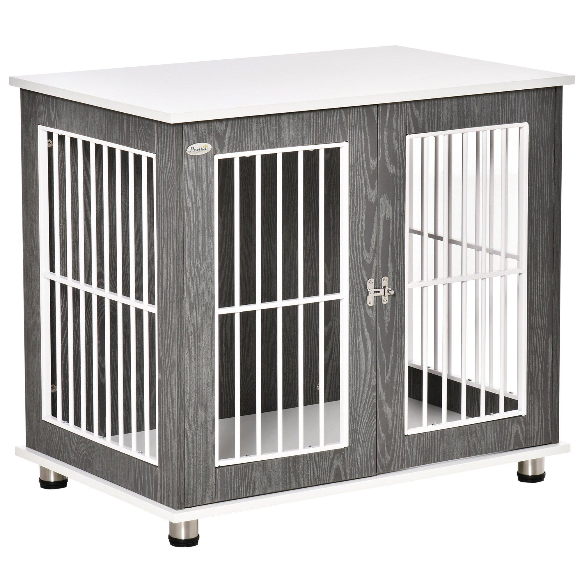 Modern Dog Crate Pet Kennel Cage End Table Lockable door,Grey & White