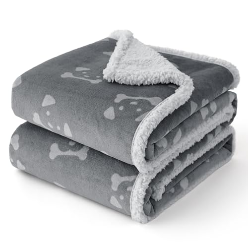 Bedsure Waterproof Dog Blanket - Dog Bed Blankets Washable for Medium Dogs, Fluffy Pet Throw Blanket for Sofa Bed Protector, Calming Cat Blanket, 76x102cm, Grey