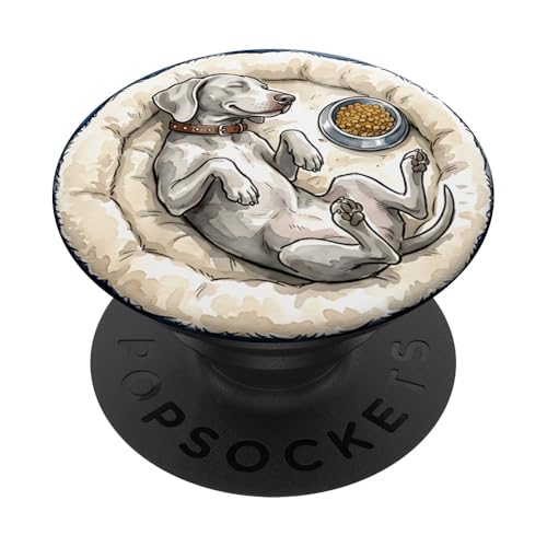 Weimaraner Dog Sleeps with Dog Bed and Food While Sleeping PopSockets Adhesive PopGrip