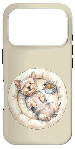 Cute Yorkie Dog Chills with Dog Bed and Food While Sleeping Case for iPhone 17 Pro