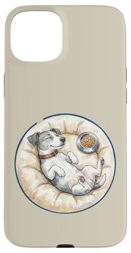 Jack-Russel Terrier Dog Chills with Dog Bed while Sleeping Case for iPhone 15 Plus