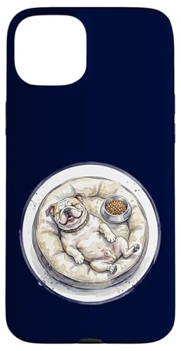 English Bulldog Dog Chills with Dog Bed Food while Sleeping Case for iPhone 15 Plus