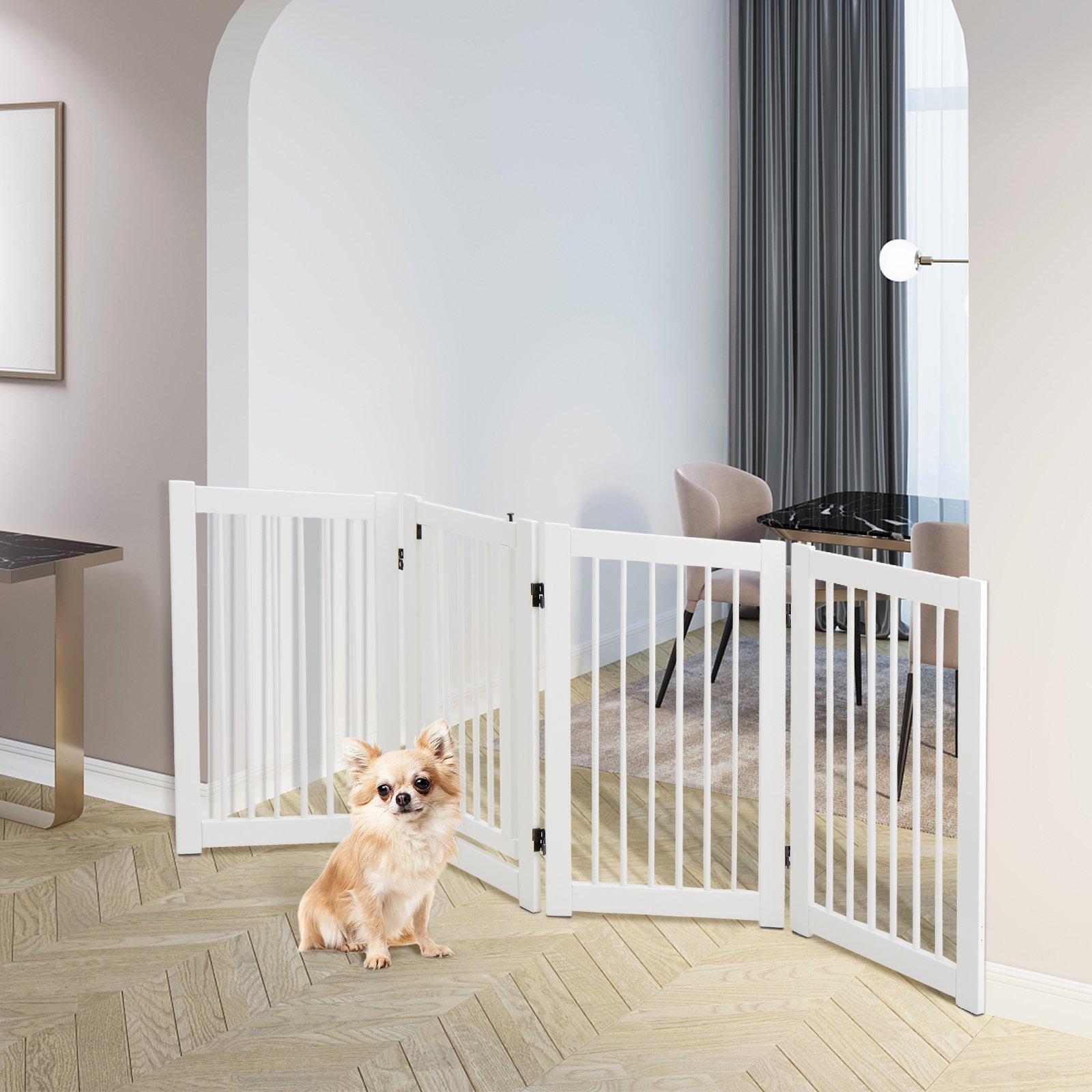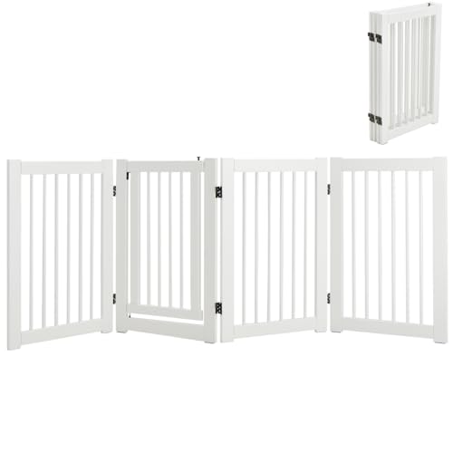 Yaheetech Freestanding Pet Gate Indoor 4-Panel Wooden Stair Gate for Small and Medium Dogs, Foldable Dog Fence with 2 Support Feet,Pets Door for Doorways/Stairs/Halls/Kitchen (91cmH,White)
