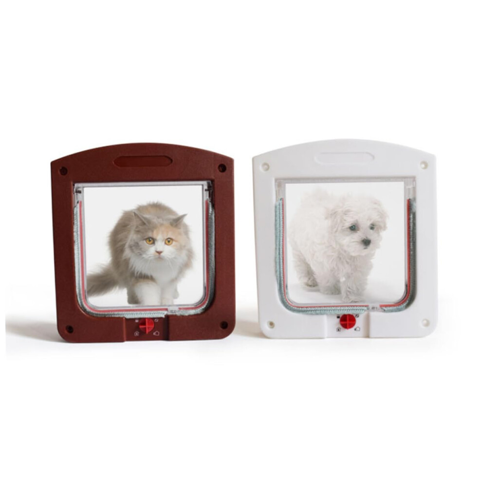 4 Way Lockable Dog Cat Kitten Door Security Flap Door ABS Plastic Animal Small Pet Cat Dog Gate Door Pet Supplies - S White