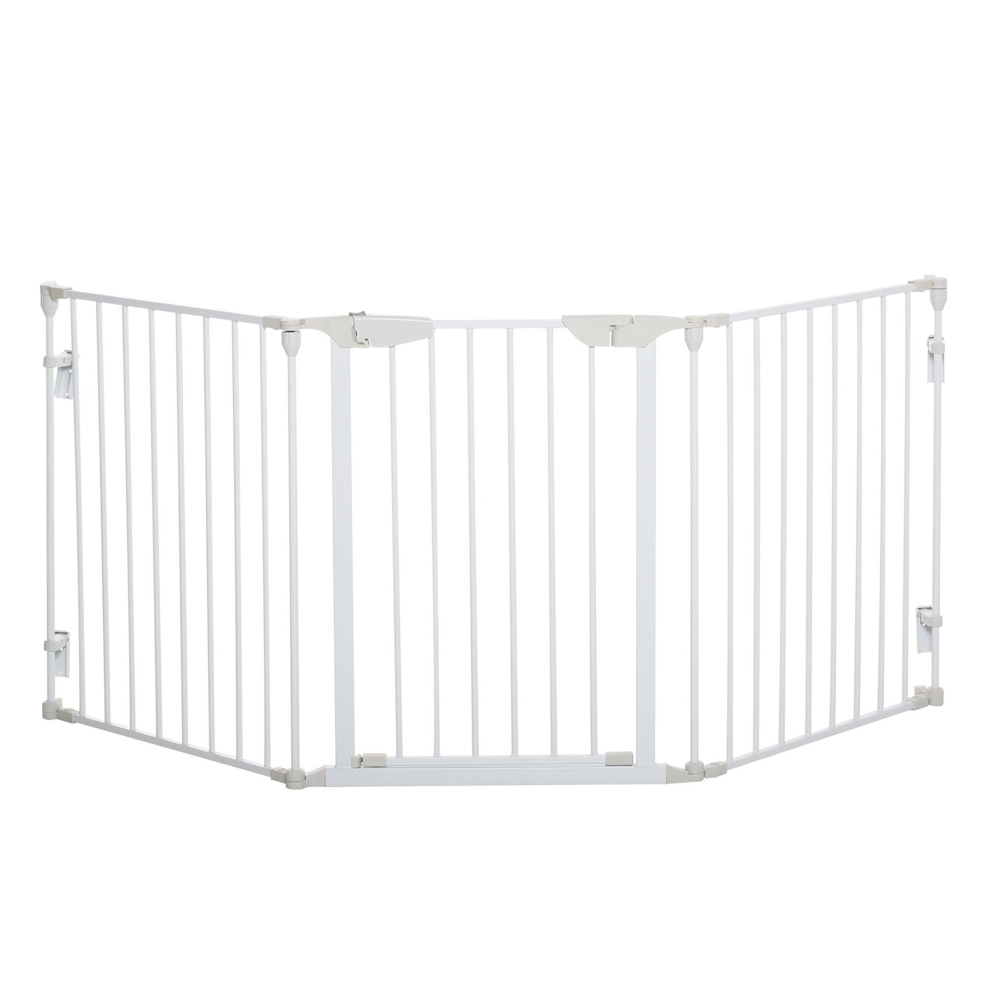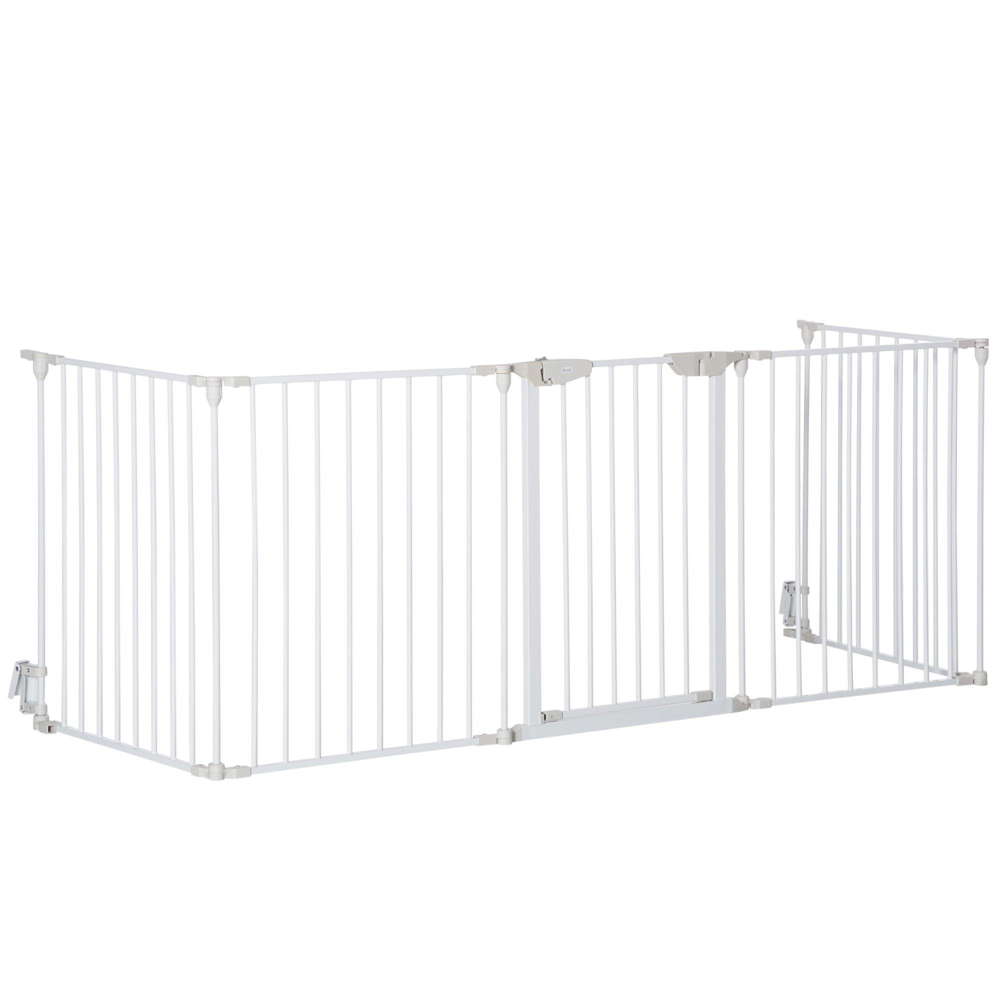COMOMY 380cm Extra Wide Baby Gate, Dog Gates for Stairs Doorways, Fire Guard Safety Gates for Kids&Pets, Auto Close Baby Fence Barrier Indoor with Door, Hardware Mounted, 6-Panels (76cm Tall, White)