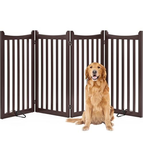 Yaheetech Freestanding Pet Gate Indoor 4-Panel Wooden Stair Gate for Small and Medium Dogs, Foldable Dog Fence with 2 Support Feet,Pets Door for Doorways/Stairs/Halls/Kitchen (91cmH, Espresso)