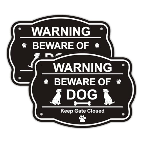 Acuxiaza 25x18 cm Beware of The Dog Sign 2 Pcs Reflective Aluminum Keep Gate Closed Sign, UV Protected, Rust Free, Waterproof Matel Signs with 4 Pre-Drilled Holes For Wall Gate Fence Door