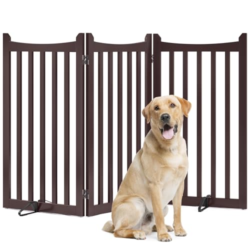 Yaheetech Freestanding Pet Gate Indoor 3-Panel Wooden Dog Gates for Small Medium Dogs, Foldable Puppy Fence with 2 Support Feet, Pets Door for Doorways/Stairs/Halls/Kitchen (Espresso,91cm H X 152cm L)