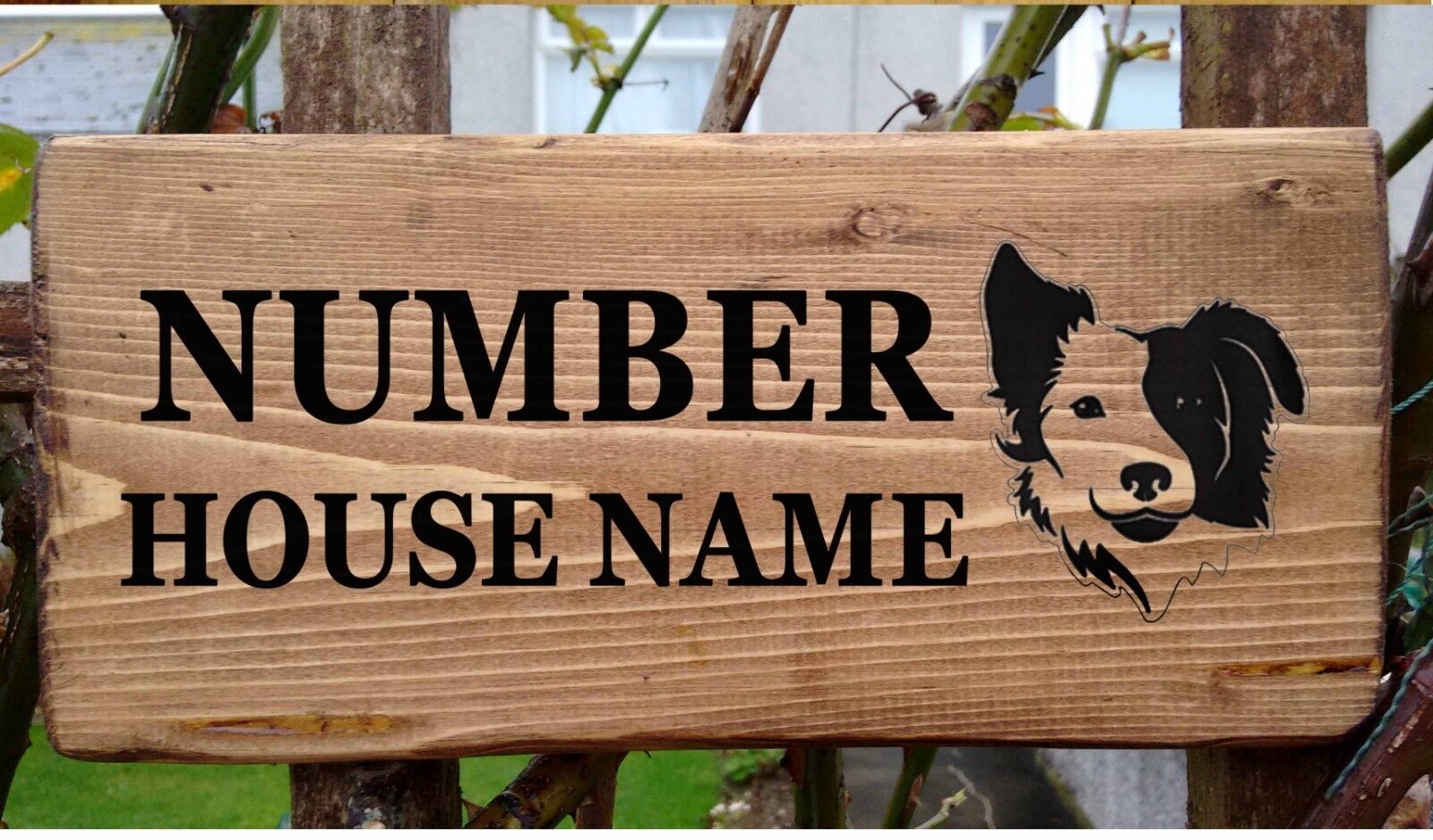 Personalised Border Collie Dog Door Gate House Wooden Sign Name Number Plaque