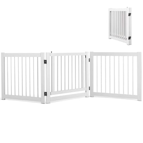 Yaheetech Freestanding Pet Gate Indoor 3-Panel Wooden Dog Gates for Small Medium Dogs, Foldable Puppy Fence with 2 Support Feet,Pets Door for Doorways/Stairs/Halls/Kitchen (White,91cm H X 152cm L)