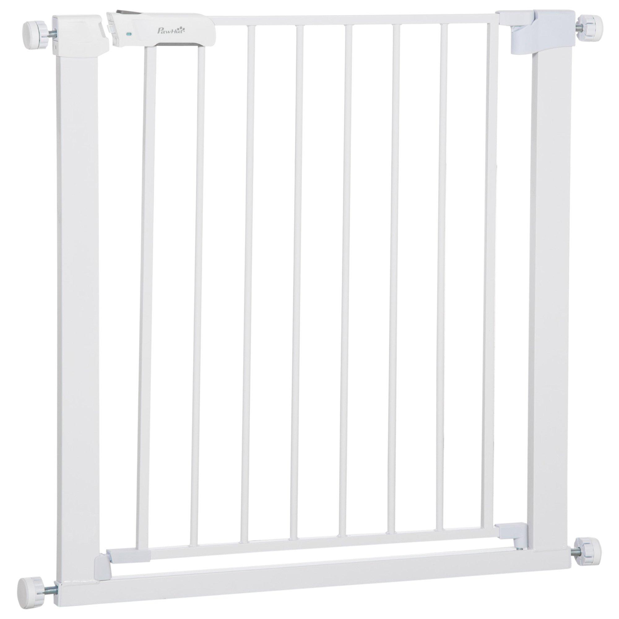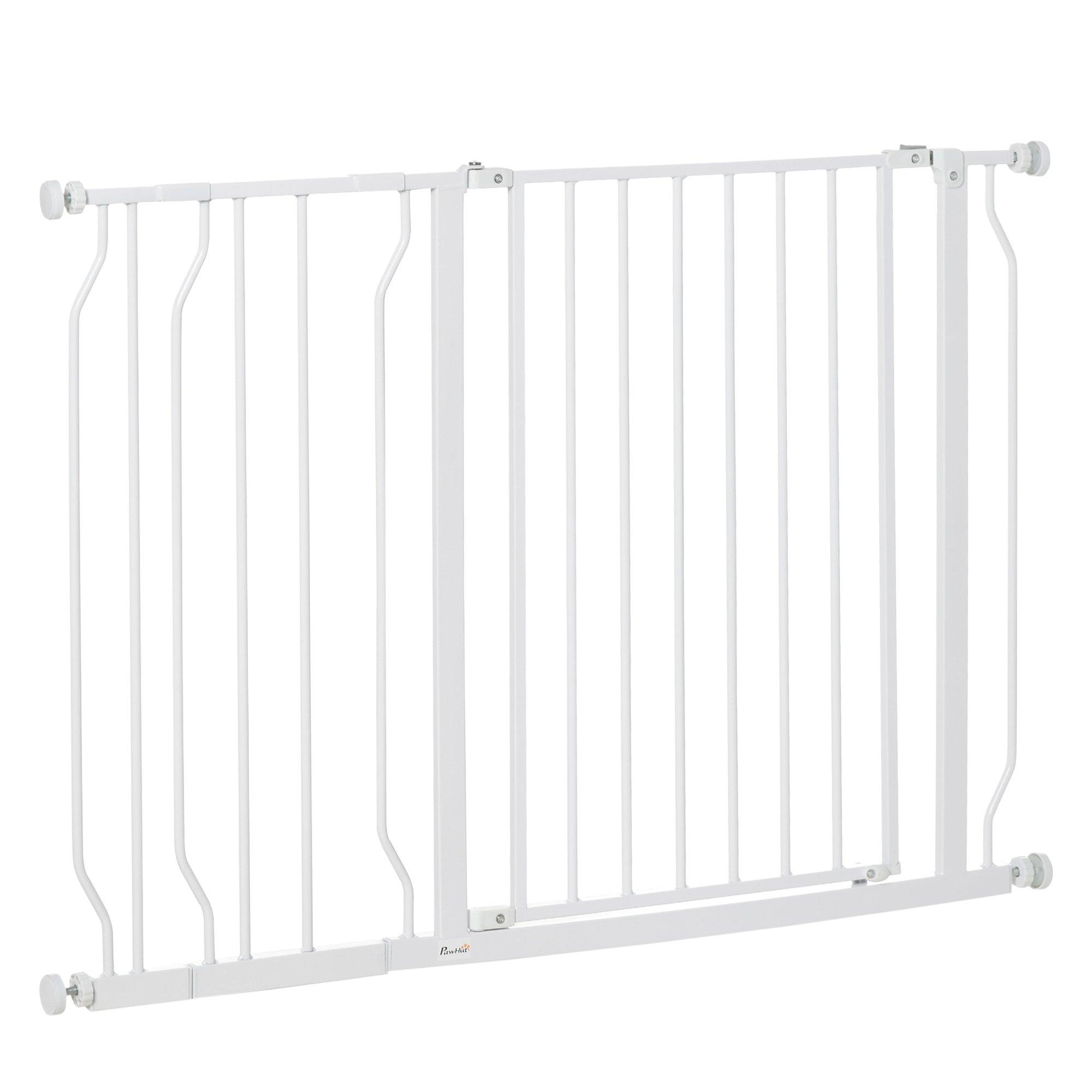 PawHut Dog Gate Wide Stair Gate w/ Door Pressure Fit Pets Barrier for Doorway, Hallway, 76H x 75-145W cm - White