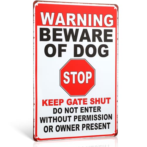 Photect Beware of the Dog Sign Warning Tin Signs Beware of Dog Signs for Fence Keep Gate Shut 7.9'' x 11.8'' dog warning sign Outdoor Gate Rust Weatherproof for Fence Door(Text Style)