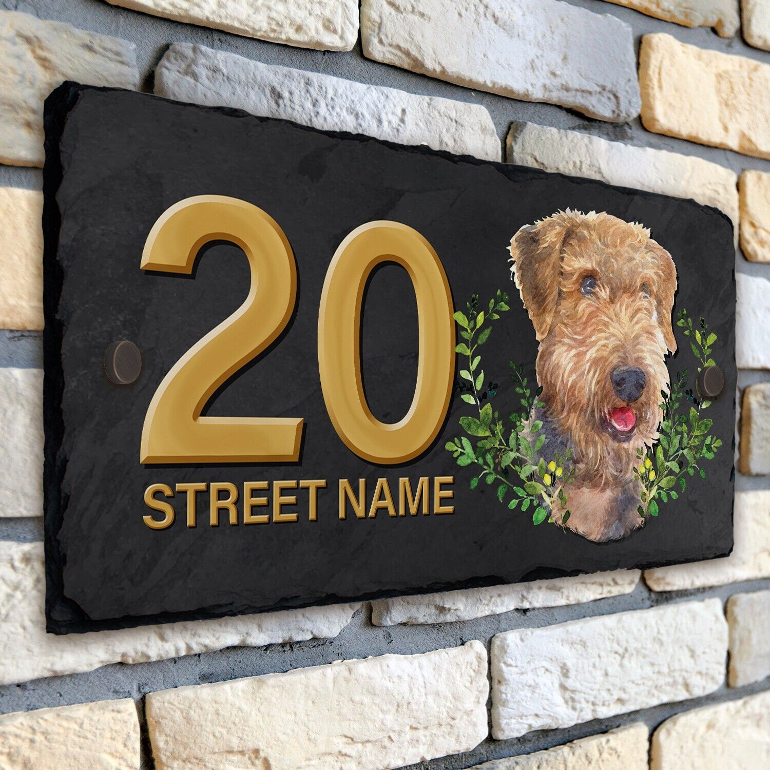 Airdale House Number Slate Sign Custom Dog Gate Door Plaque Personalised KDS01