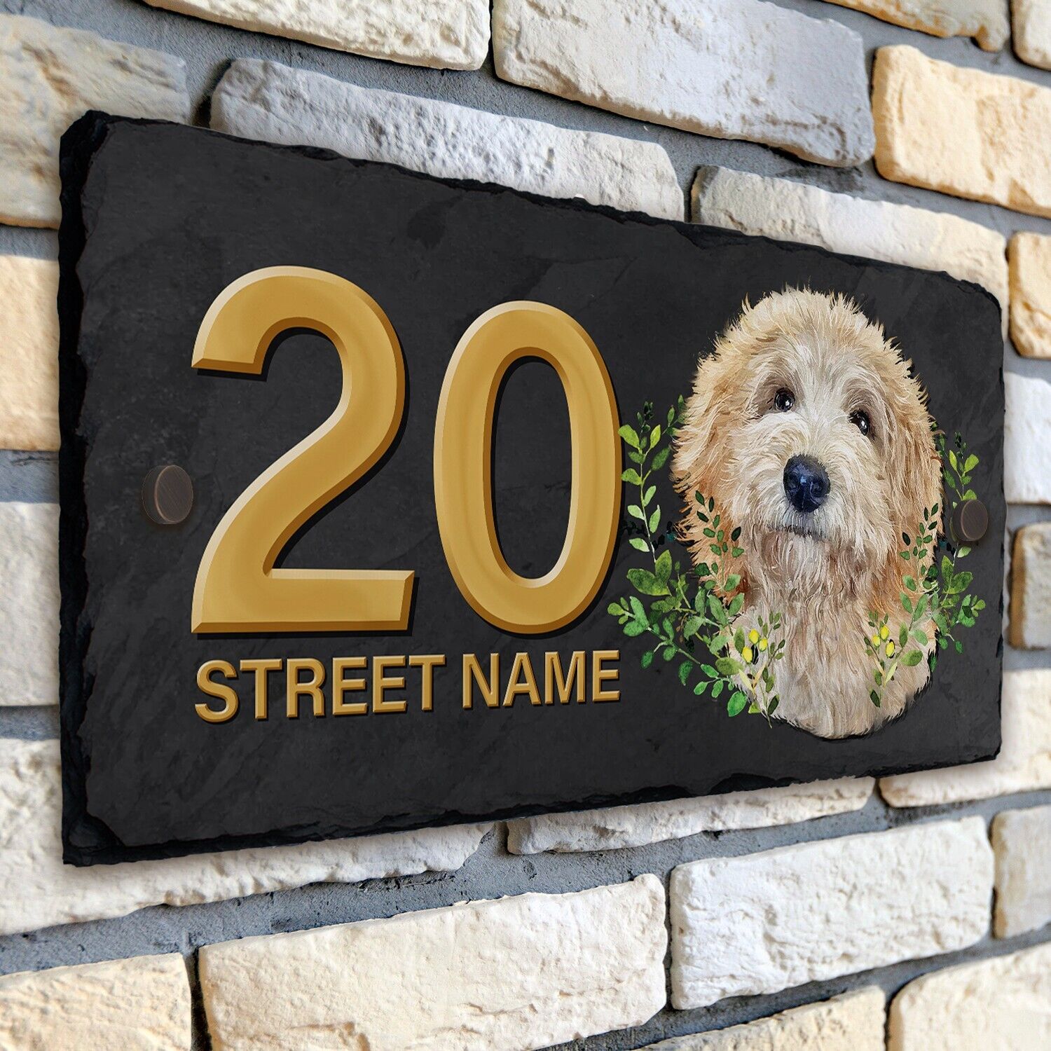 Golden Retriever House Number Slate Sign Dog Gate Door Plaque Personalised KDS31