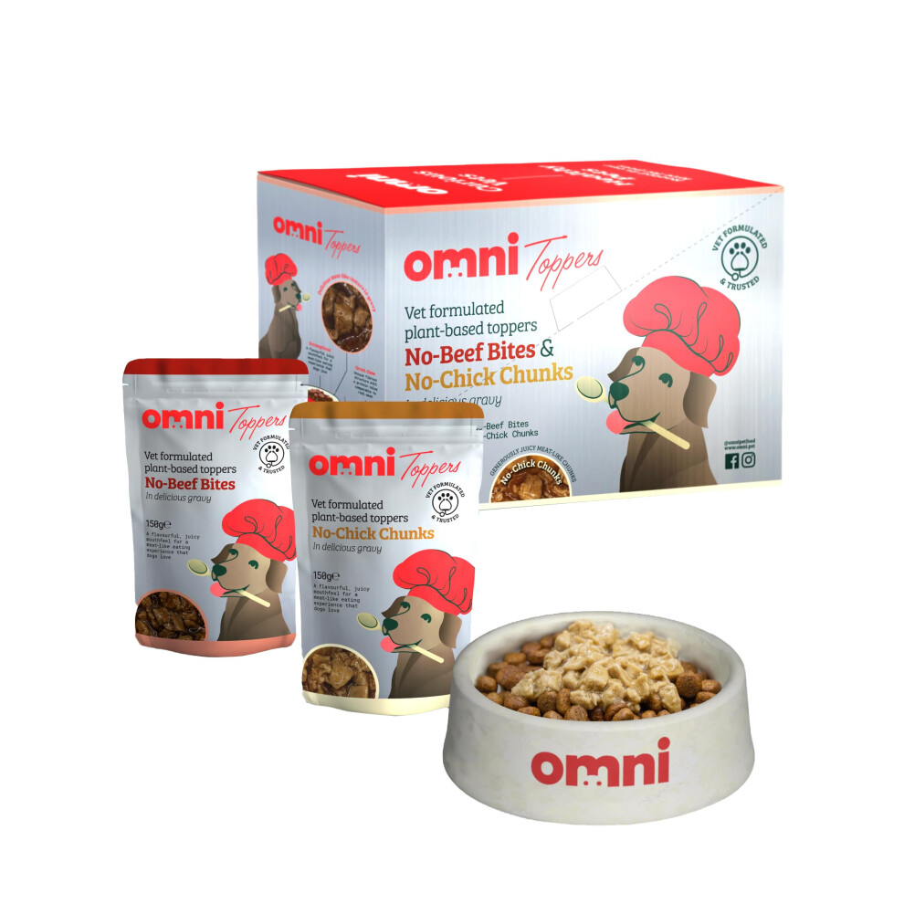 Omni Wet Dog Food Toppers - Dragon?s Den Winners, Vet-Formulated Pouches to Use as Dog Treats or a Food Topper on Dry Food, Tasty Chunks in Gravy, 4