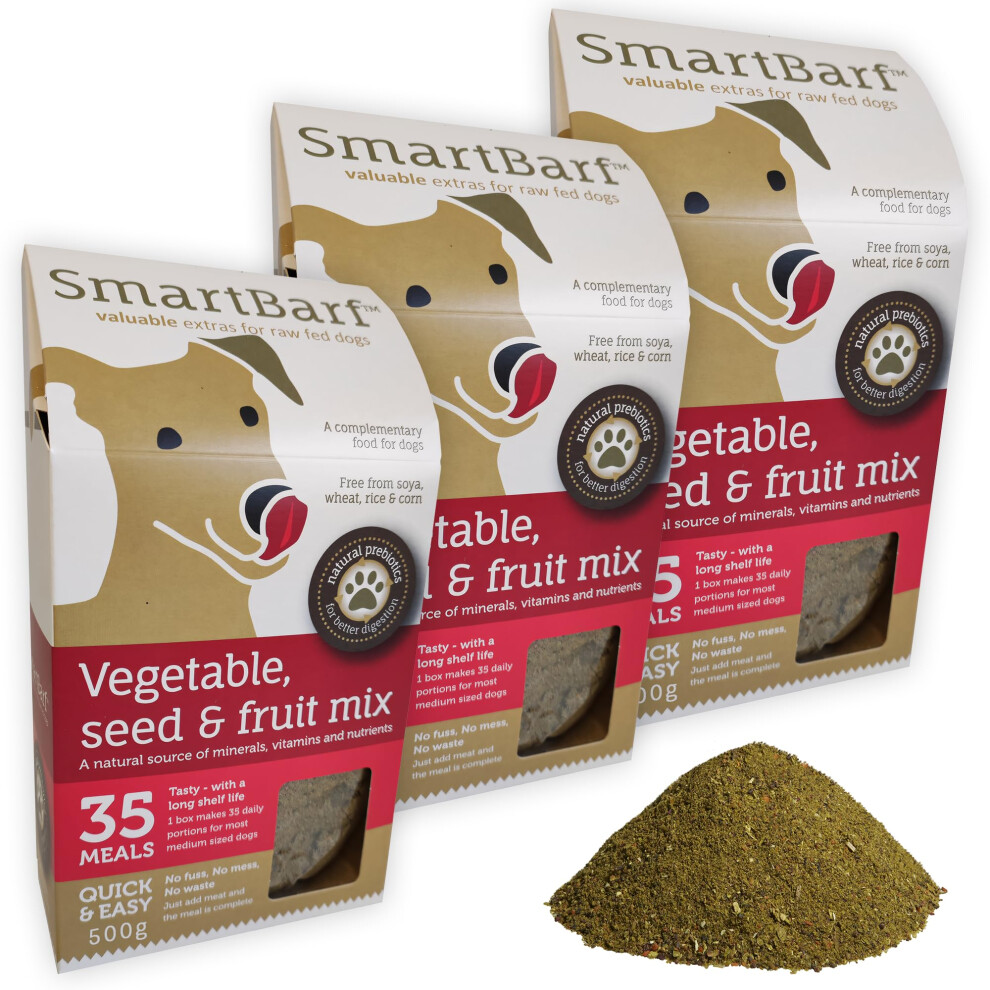 SmartBarf - Dog Food Toppers (500g) with Essential Nutrients - Vegetable, Seed & Fruit Mix - Prebiotics for Dogs, Dog Gut Health Supplement, Raw Food