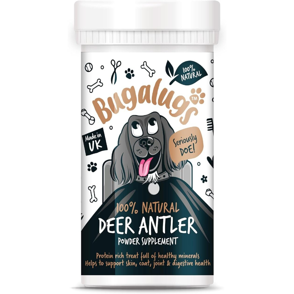 Bugalugs Deer antlers Supplement dog food toppers Powder for Dogs & puppy, high in protein dog food, fibre, vitamins & minerals. dog supplement (70g)