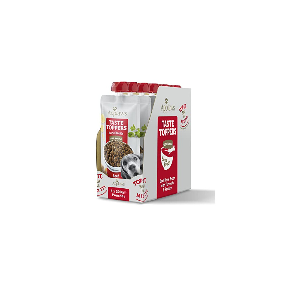 Applaws Taste Toppers 100% Natural Dog Food Topper, Beef Bone Broth for Dry Dog Food 6 x 200g Pouch