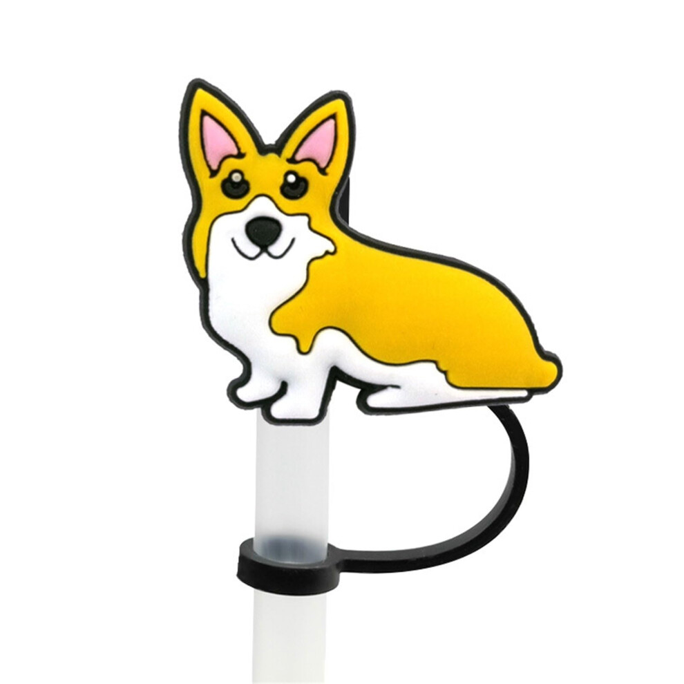 Silicone Straw Covers Cartoon Dog Dustproof Toppers Food Grade Caps for 8mm Drinking Straws