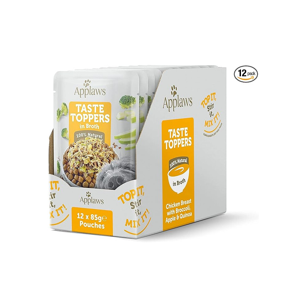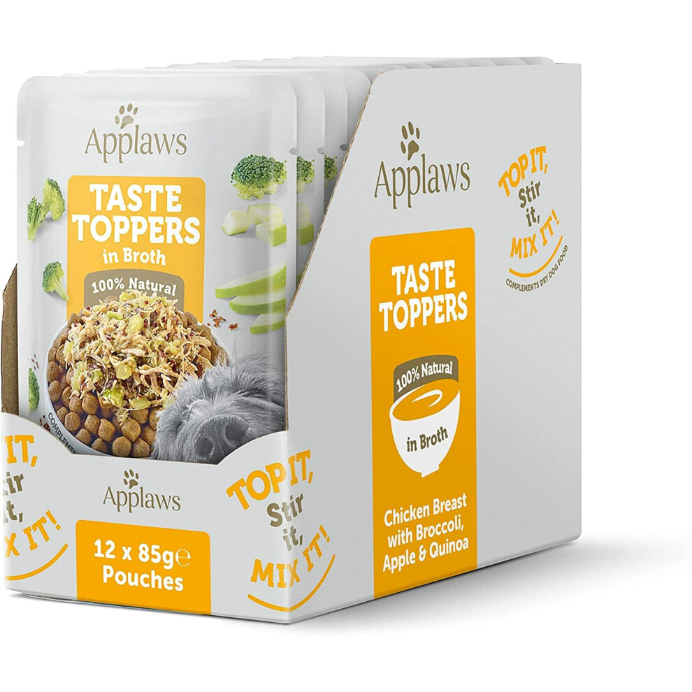 Applaws Taste Toppers 100% Natural Wet Dog Food Topper, Chicken and Vegetables in Broth Pouch (12 x 85g Pouches)